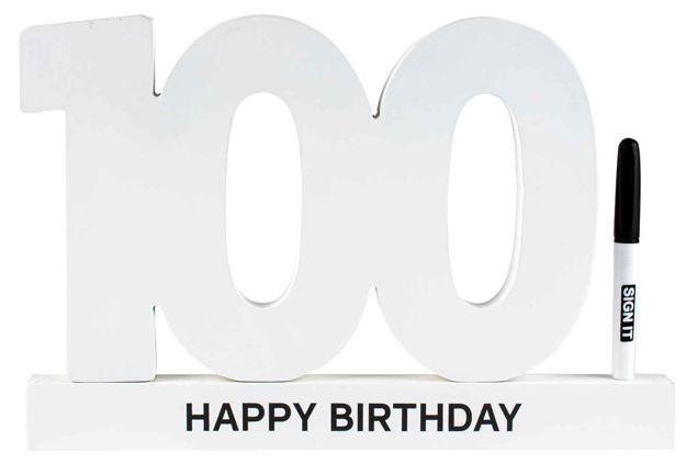 Includes 1 number 18 shaped signature block in white with black font ‘ Happy Birthday’ message, comes with 1 black marker.