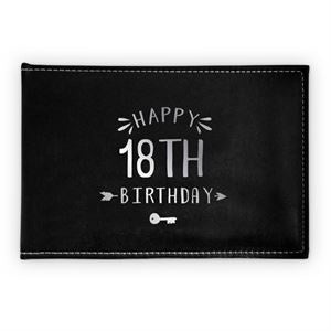 Features: Hard Cover with silver text that reads “ Happy 18th Birthday”.