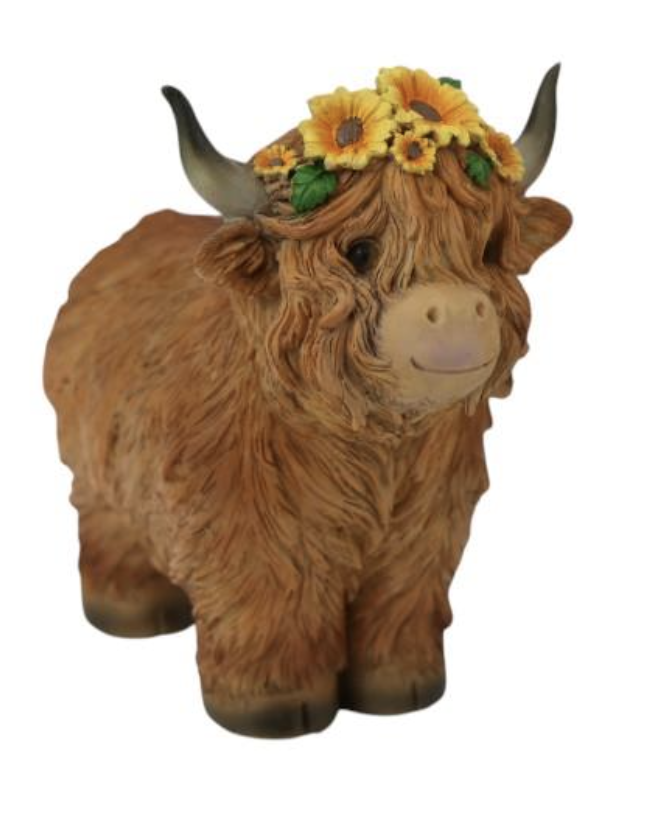 The 19cm Highland Cow with Sunflowers combines an adorable design with vibrant sunflower accents, making it a charming decorative piece. Crafted from high-quality resin, it ensures durability and intricate detailing for both indoor and outdoor use. Its compact size and cheerful appearance make it an ideal addition to any space, adding warmth and character.