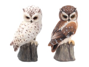 26cm Sitting Owl on Tree Stump 2 Assorted