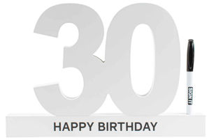 Includes 1 number 30 shaped signature block in white with black font ‘ Happy Birthday’ message, comes with 1 black marker.