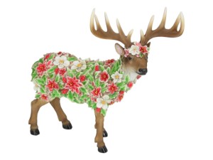 35cm Standing Deer with Floral Design