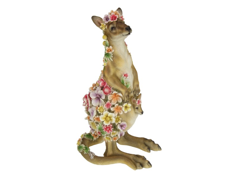 Poly Resin Kangaroo with Beautiful Colourful Flowers