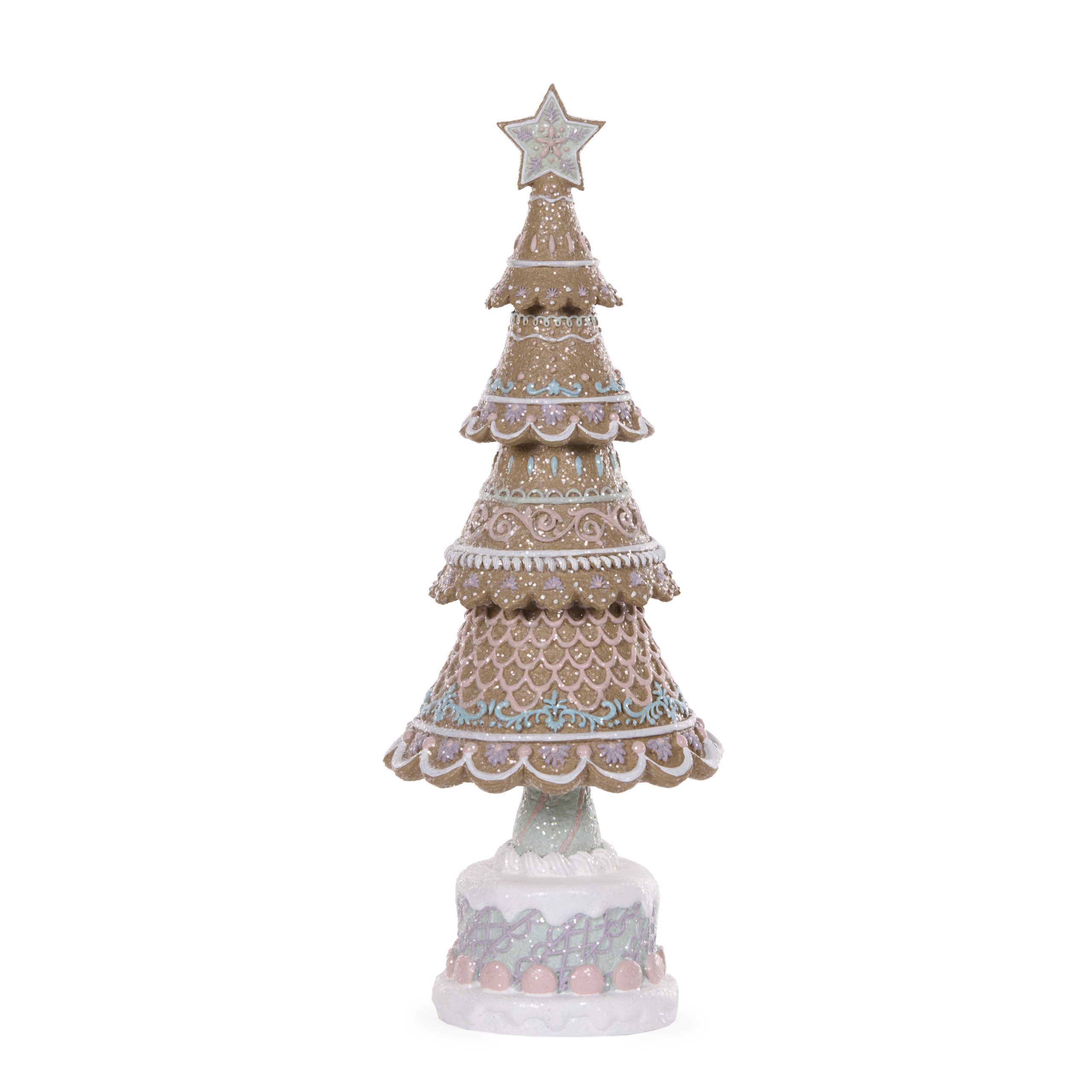 The 42cm Elaborate Pastel Gingerbread Tree features intricate detailing and soft pastel tones, making it an elegant addition to your festive decor. Designed for durability and charm, it complements a variety of holiday themes.