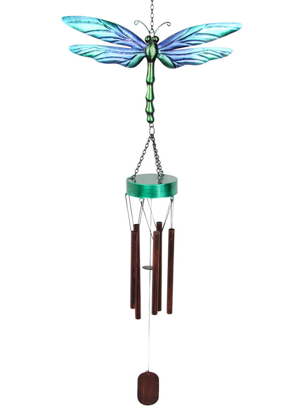 36cm Glass/Metal Butterfly/Dragonfly/Humming Bird Wind Chime 3 Asstd