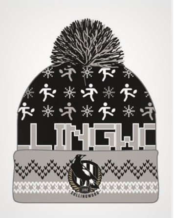This adult beanie features a vibrant multi-colored pompom and a bold jacquard design, making it a standout winter accessory. The rolled-back cuff adds a classic touch and showcases an embroidered Collingwoods logo on the front. Crafted for warmth and comfort, it’s officially licensed AFL merchandise and designed to fit most sizes.