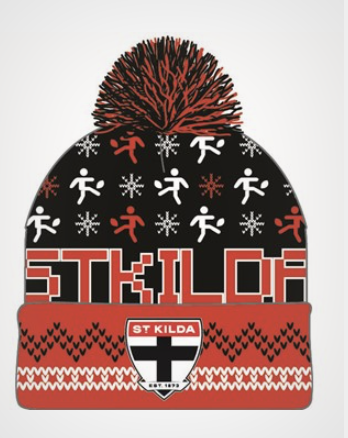 This adult beanie features a vibrant multi-colored pompom and a bold jacquard design, making it a standout winter accessory. The rolled-back cuff adds a classic touch and showcases an embroidered St Kilda logo on the front. Crafted for warmth and comfort, it’s officially licensed AFL merchandise and designed to fit most sizes.