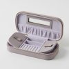 The Amara Cosmetic & Jewellery Holder Case’s simple and compact design makes it ideal for carrying makeup and jewellery wherever you go. The structured base is designed to organise jewels, with built-in soft suede compartments to keep jewels secure and easily accessible, while the top secure zip bag is ideal for storing makeup and cosmetic brushes. With a pebble faux leather texture and gold metal hardware, this bag exudes simple and minimalist style.