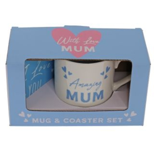 Each Mug is printed with Amazing Mum and pattern on front and back.