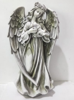 Enhance your home decor with the Angel With Baby sculpture. Crafted from durable poly resin, this exquisite piece stands at 27.5cm x 22cm x 52cm and weighs 3.2kg, making it a stunning addition to any room. Embrace the serenity and beauty of this angelic figurine today.