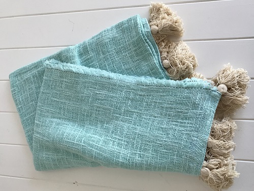 Aqua Throw Blanket in Raw Cotton Feel Material