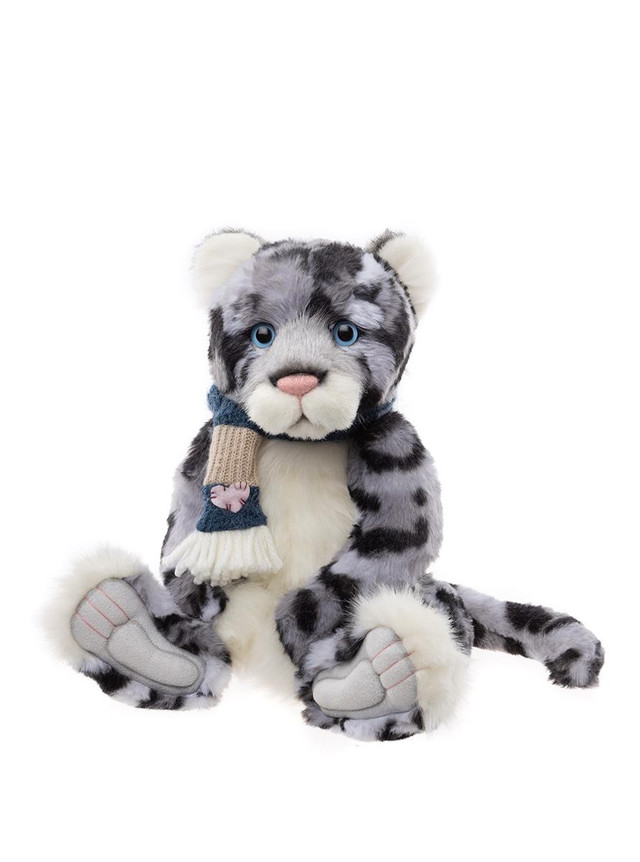 Babbledy is part of our extra-special Paw Store Exclusive Collection, which means you’ll only find her at our Charlie Bears Paw Stores. This enchanting snow leopard is a true winter wonder. Her luxuriously soft plush coat features a beautiful blend of grey, black, and cream tones, making her just as delightful to touch as she is to admire. Babbledy’s gentle expression is brought to life with bright blue eyes and a hand-embroidered pink nose, making her an irresistible addition to any hug. Her sculpted paw pads come with adorable tickly toe detailing, adding a sweet finishing touch. To complete her wintry charm, Babbledy wears a cosy knitted scarf in shades of blue, beige, and white, finished with a heart lovingly stitched on. Recommended for ages 3 years+. Snow Leopard height: 41cm/16″/13.7 Bear Paws.