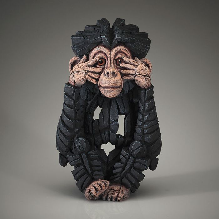 A modern and whimsical take on the Japanese proverb – The Three Wise Monkeys, the ‘see no evil’ baby chimpanzee has been brought to life in a charming sculpted representation. The chimp’s realistic human-like facial features have been intricately carved completed with a hand painted finish. These baby chimpanzees can be collected as a stand-alone piece or as a complete set of three.