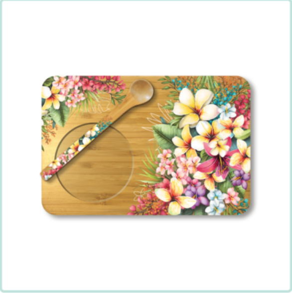 Bamboo Tea time Tray with Spoon Paradise Bloom