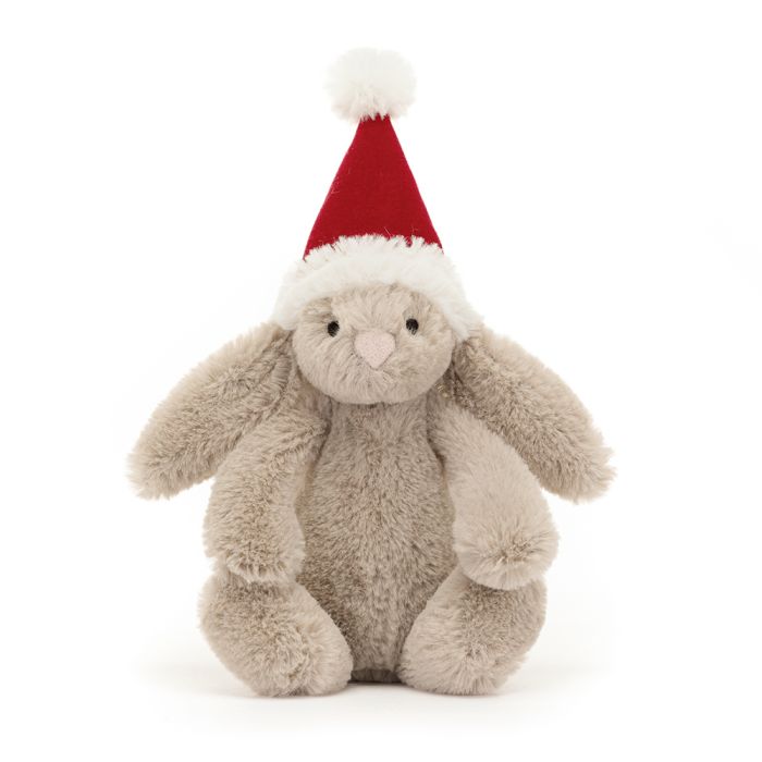 The Bashful Christmas Bunny Decoration is a praline coloured bunny with a berry velour hat with cream trim and pompom – it just fits over those soft lop-ears! Loop this bunny onto the tree for a hopping Christmas party!