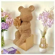 Beaded Flower Bear Resin Statue, Creative Home Decor Piece, Perfect for Christmas and Valentine’s Day Gifts, for Various Holiday Occasions