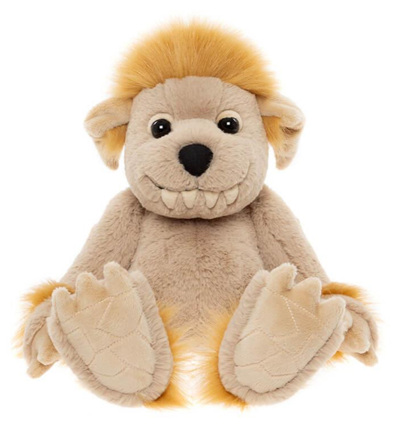 Crafted from the softest beige plush with warm orange fur accents, Bedrock’s playful personality shines through his tufted hair, cheerful grin, and oversized paws. Whether he’s joining in imaginative play or simply snuggling up for a nap, this gentle giant brings a reassuring presence wherever he goes. With his non-jointed design and machine-washable material, Bedrock is easy to care for and built to be a lasting companion for years to come.