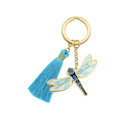 Materials: Gold metal and enamel, with a tassel attached to keyring and chain.