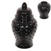 Illuminate your space with elegance using this stunning Black with Glitter Leaf Lantern. Crafted from glass and standing at 30cm tall, this exquisite lantern, adorned with LED string lights, adds a touch of sophistication to any room.