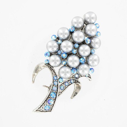 Elevate your style with our exquisite BlueGrey Pearl Brooch, featuring a stunning Rhodium Blossom design adorned with Aquamarine Swarovski crystals and lustrous light grey pearls. Add a touch of elegance and sophistication to any outfit with this breathtaking accessory – a must-have for any fashion enthusiast!