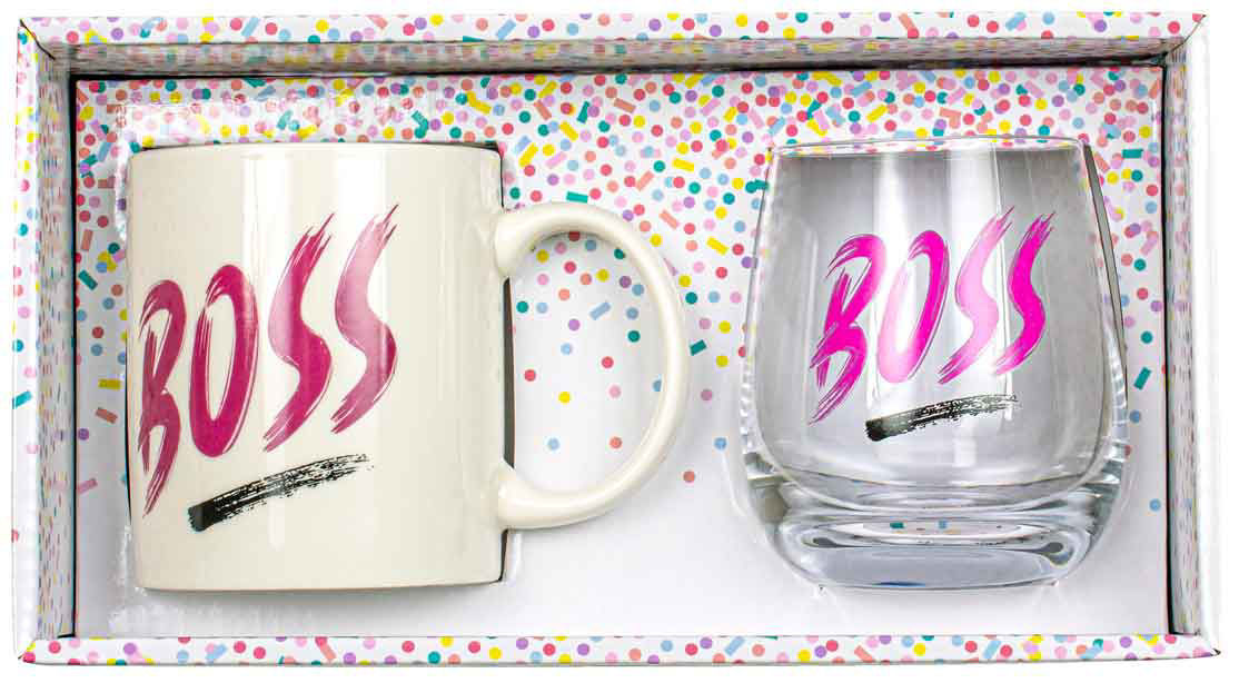 Elevate your coffee game with this chic Boss Lady Mug & Stemless Set, featuring a 360ml ceramic mug and a stylish 360ml stemless glass. Perfect as a gift or for enjoying your favorite beverages in style.