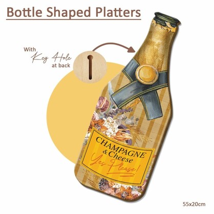 Bamboo Bottle Shaped Serving Platter. 55x20cm. Champagne & Cheese, yes please.