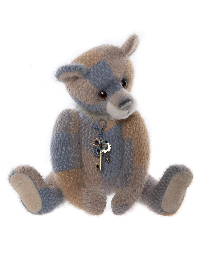 Camelot is an a-paw-able petite bear made from gorgeous brown curly mohair and alpaca. He has a dark brown hand-embroidered nose, a lightly trimmed off-white muzzle with airbrushing, the signature "who me" look, and flat paw pads. He wears a paw-geous double organza bow around his neck, as well as a key to your heart necklace. Numbered limited-edition of 300. Recommended for ages 14 years+. To register your interest in Camelot, please send us a message to headbear@charliebears.com. Bear height: 32cm/12.5"/11 Bear Paws.