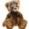 Camelot is an a-paw-able petite bear made from gorgeous brown curly mohair and alpaca. He has a dark brown hand-embroidered nose, a lightly trimmed off-white muzzle with airbrushing, the signature “who me” look, and flat paw pads. He wears a paw-geous double organza bow around his neck, as well as a key to your heart necklace. Numbered limited-edition of 300. Recommended for ages 14 years+. To register your interest in Camelot, please send us a message to headbear@charliebears.com. Bear height: 32cm/12.5″/11 Bear Paws.