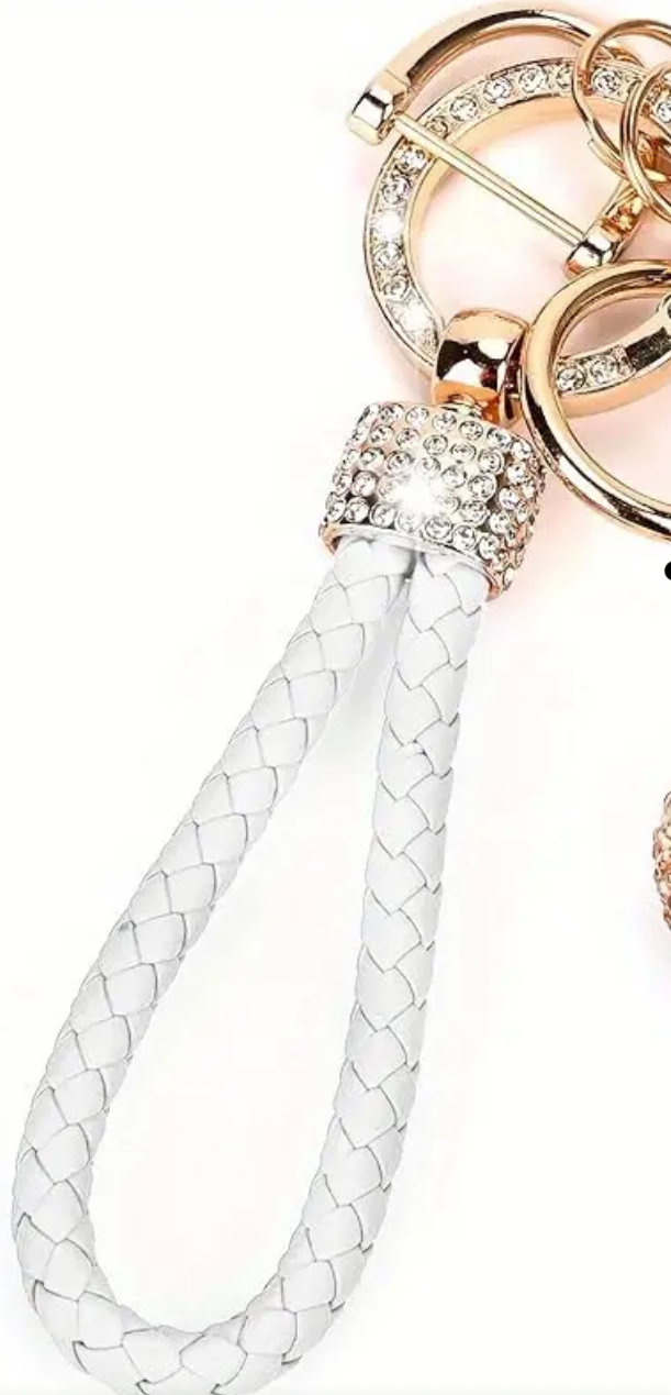 Car Wrist Keychain Rhinestone White