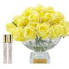 Each life-like perfumed Versailles French Rose Bouquet has been skilfully hand crafted and set in gel giving it the appearance of water. Each petal has a special natural coating to give them a true to life touch & appearance. Thirty-one roses have been arranged in a luxury vase with a gold Cote Noire signature badge.