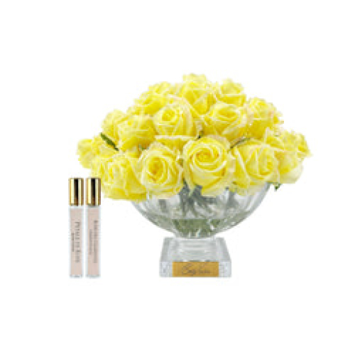 Each life-like perfumed Centrepiece Rose Bud Bouquet has been skilfully hand crafted and set in a water-like gel. Each petal has a special natural coating to give the arrangement a true to life touch & appearance. Includes thirty-seven rose buds arranged in a luxury vase with a gold Cote Noire signature badge.