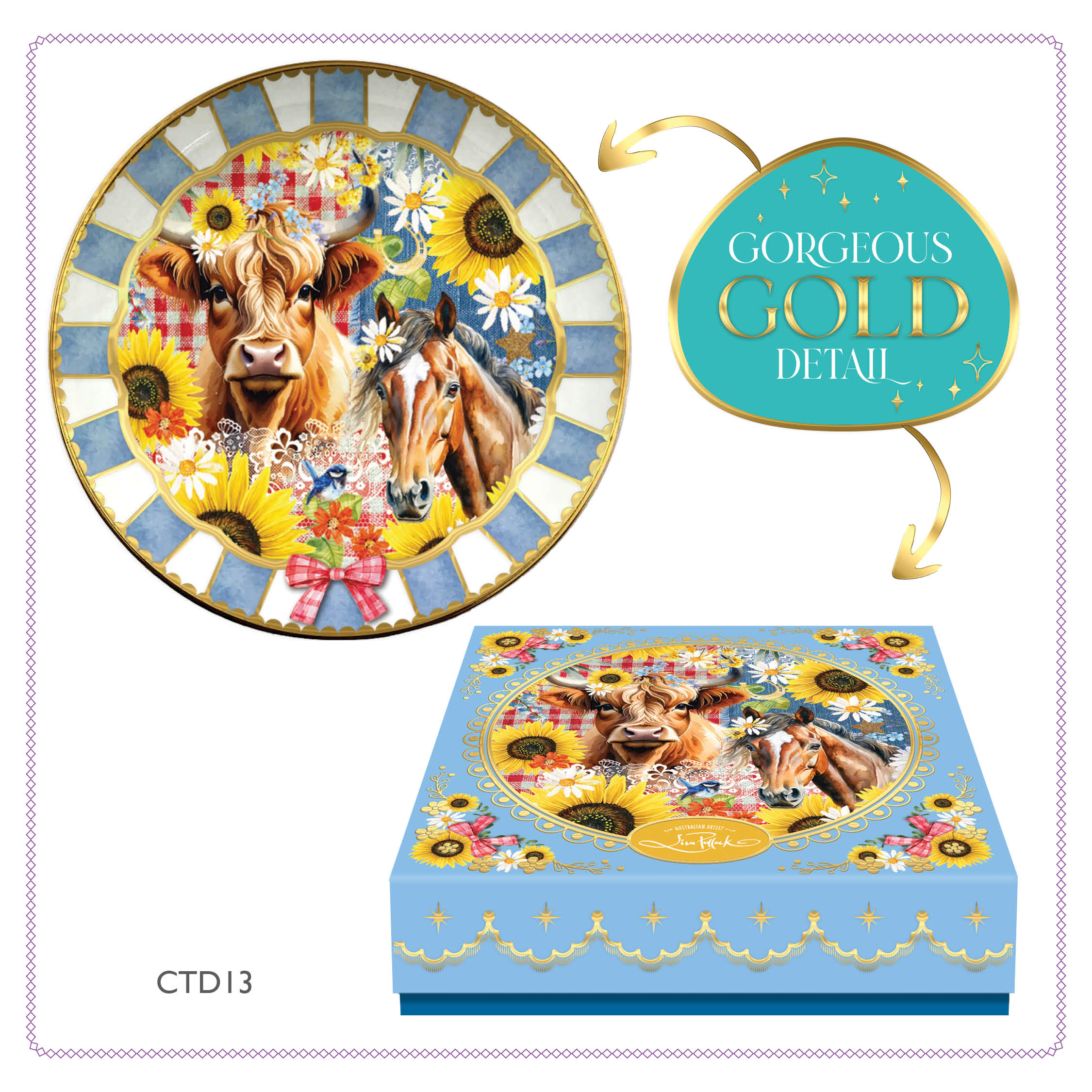 Ceramic Trinket Dish. Gold Edging. 10.5cm round. Inc gift box. Country Collection
