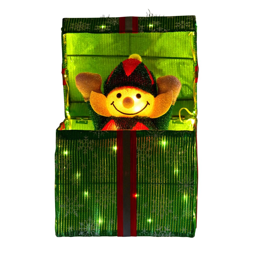 Christmas Elf in a Gift Box with Animation & Lights, 30cm