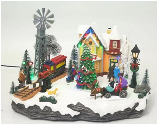 Christmas LED Village w Flying Santa & Deers & Turning Tree & Music