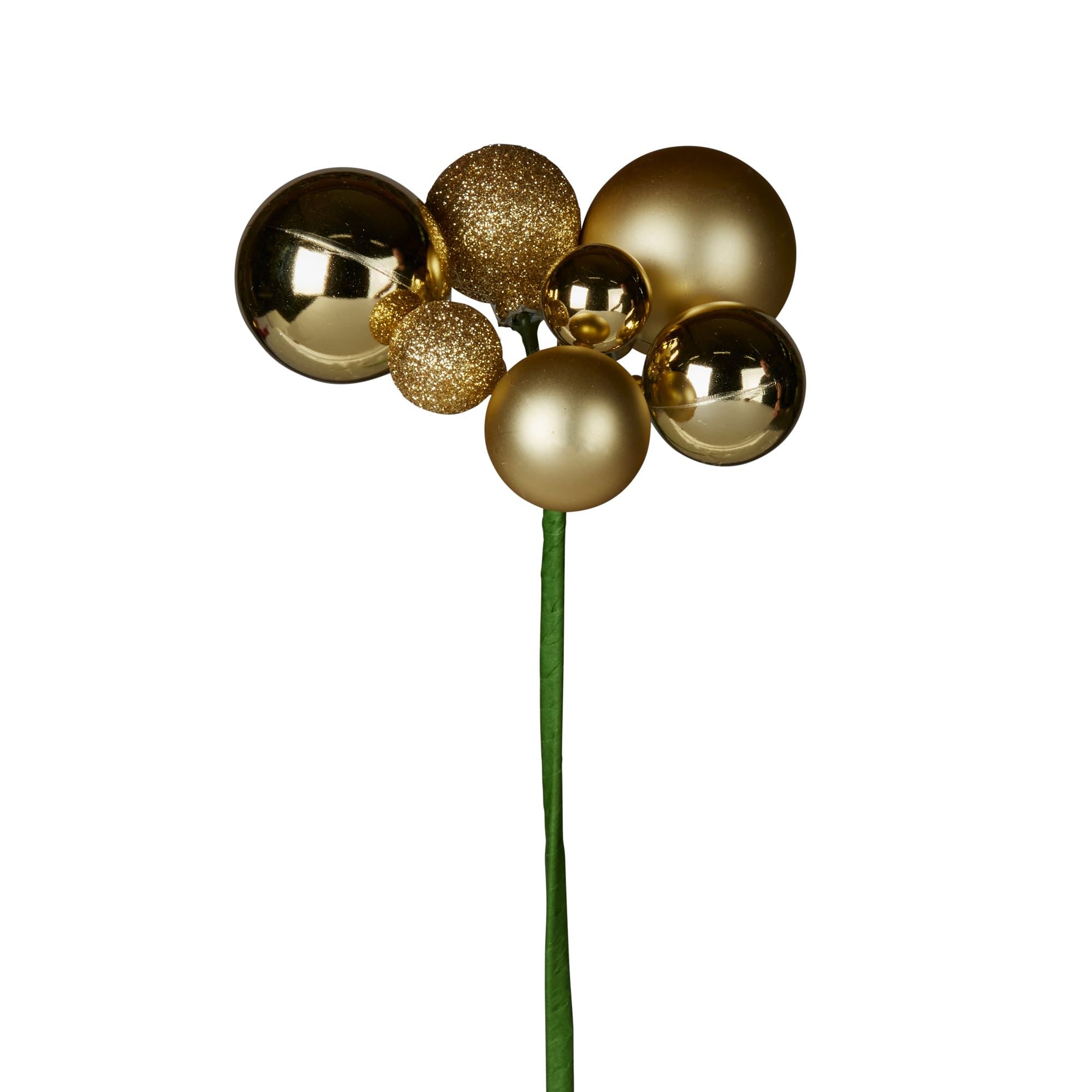 This is the perfect pick for table decorations, adding to wreaths, garlands or trees for a splash of glorious gold. It has a mix of 2, 3 & 4cm gloss and matte baubles and the 23cm stem means it can be used in smaller displays for some extra Christmas bling.