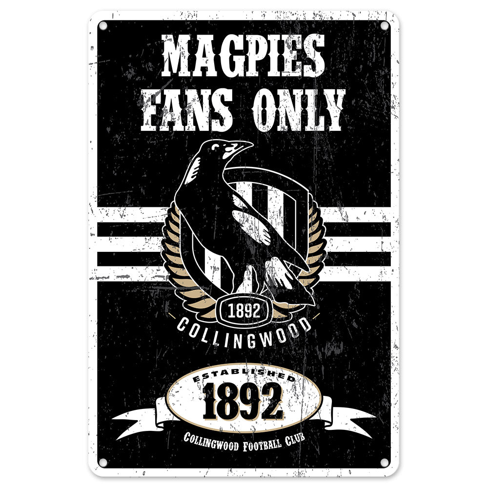 Retro Metal Sign. Crafted from durable materials, this sign is not just a piece of decor but a nostalgic statement. Perfect for Collingwood Aft enthusiasts, add a touch of retro flair to your space with this unique merchandise!