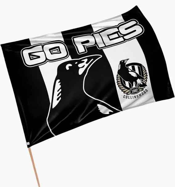 Collingwood logo on one side, text on the other
