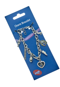 Features multiple Magpies themed individual charms – Magpies head logo, mini football player, football charm, ALWAYS Collingwood slogan tag, boot charm, Magpies logo charm and heart charm with team logo