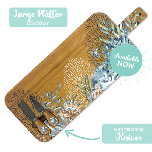 This generous 53cm x 23cm board is beautifully designed by Australian artist Lisa Pollock.