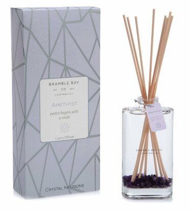 Channel your inner peace and meditate with Amethyst paired with sweet vanilla and soft lavender. Enjoy our Australian Made 150ml Reed Diffuser infused with semi-precious Amethyst Chips.