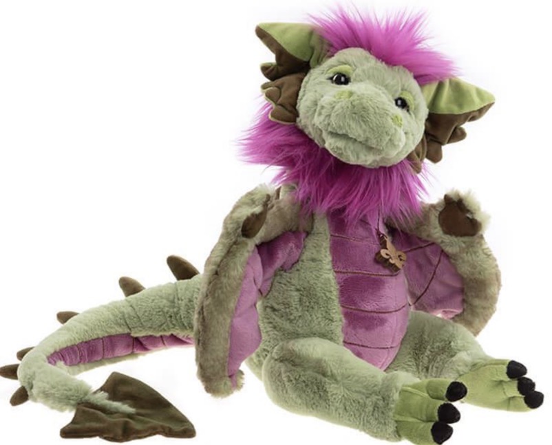 Meet Eglin, a breathtaking addition to our Signature Collection, inspired by the enchanting illustrations of Ali Montgomery. This majestic wyvern is crafted from luxuriously soft plush fur in a captivating blend of green and purple hues. Tall and fierce, this winged, dragon-like creature embodies the true spirit of myth and legend. Eglin features striking back spikes, powerful wings, and intricate detailing that highlights its sharp features and mythical allure. A carefully crafted necklace adds the perfect finishing touch, giving Eglin a sense of both power and elegance. This unique piece is perfect for collectors and fans of mythical creatures, bringing a touch of fantasy and adventure into your home. If Eglin captures your imagination, be sure to explore his equally charming companions: Zen Zhu, Feldspar, and Mirren. Suitable for ages 14 years+. Limited edition of only 2000 pieces globally. Wyvern height: 43cm/17”/14.3 Bear Paws. To register your interest in Eglin, please email us at cubhouse@charliebears.com.