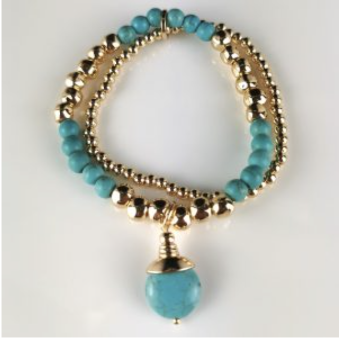 This Elastic Gold and Teal Bracelet combines a vibrant teal hue with a sleek gold finish for a striking design. Its elastic construction ensures a comfortable and secure fit, accommodating various wrist sizes with ease. A versatile accessory, it complements both casual and formal outfits effortlessly.