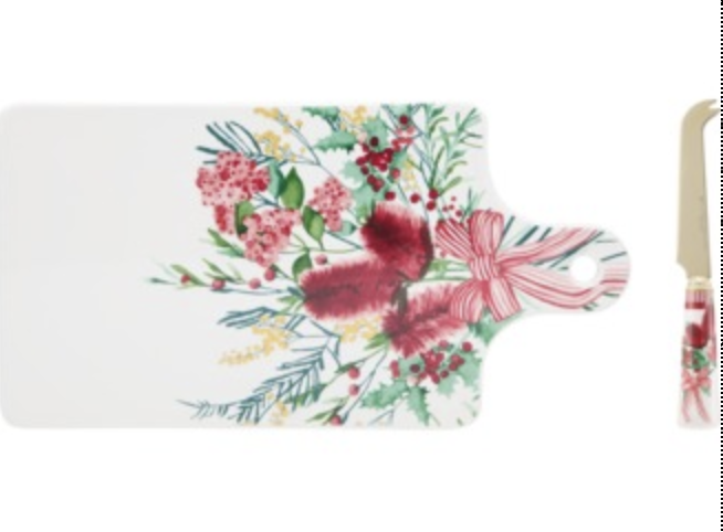 Festive Flora Cheese Paddle & Knife Set Gift Boxed