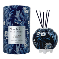 A hand-poured, custom-designed ceramic diffuser that continuously fills your room with the comforting fragrance of Fresh Fig & Cedar. Featuring a Hamptons inspired print, these ceramics are designed to be re-used long after the diffuser is finished.