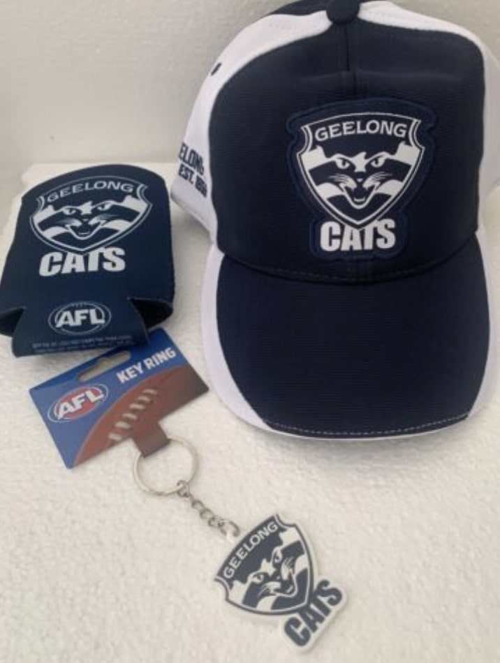 AFL Geelong Cats Cap Can Stubbie Cooler and Key Ring Gift Pack