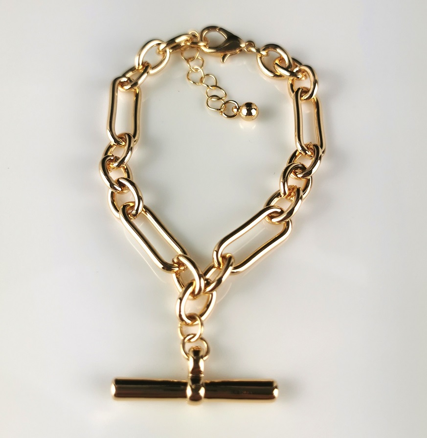 This gold bracelet fob features an elegant design crafted from high-quality materials, making it a versatile accessory suitable for various occasions.