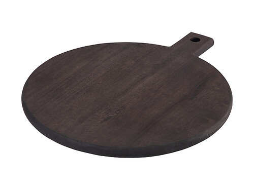 Contemporary round paddle shape with a handle for easy serving