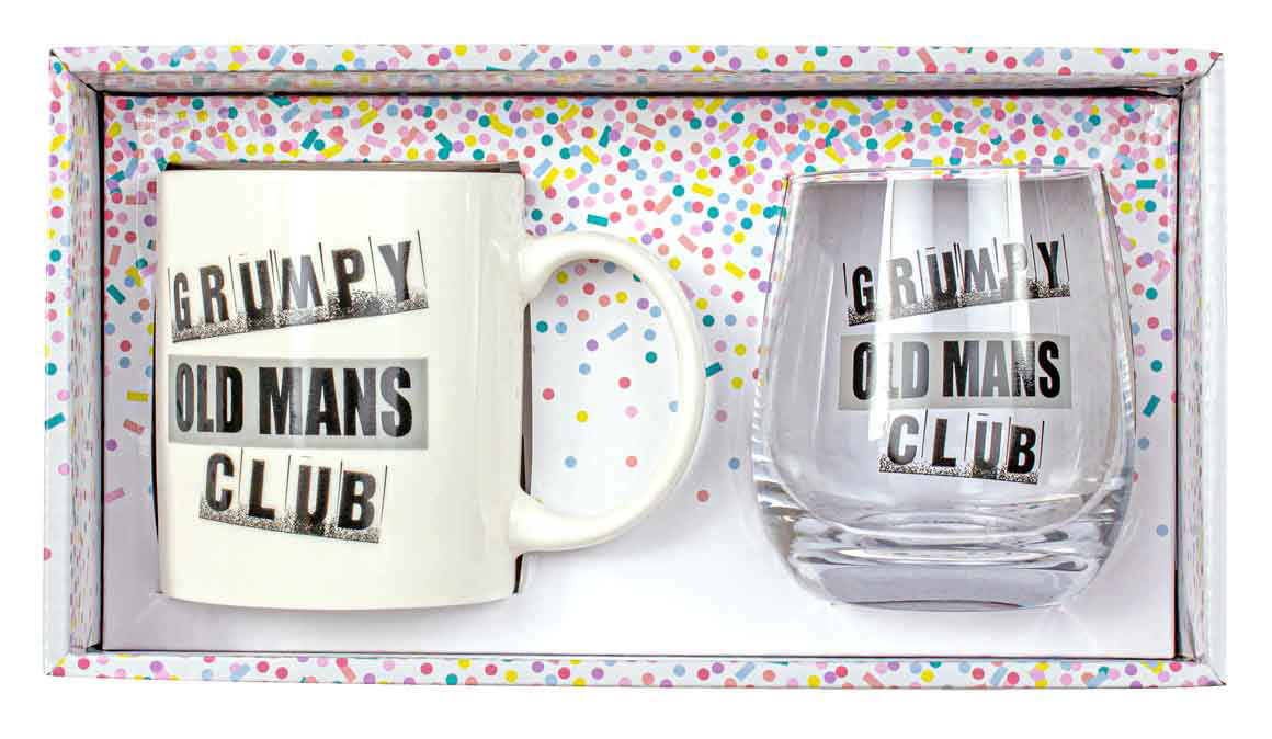 Indulge in your morning brew with the Grumpy Bastards Club Mug & Stemless Set, featuring a 360ml ceramic mug and stemless glass gift set. Elevate your coffee or tea experience with this stylish and durable collection.