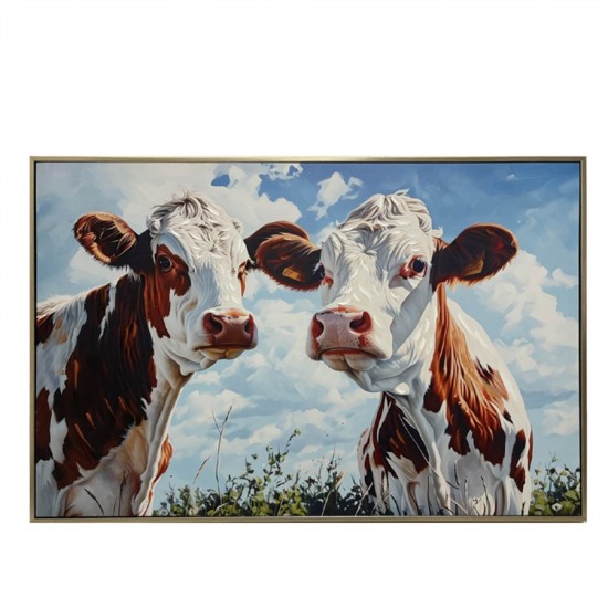 Elevate your space with this exquisite Hand Painted Cows Canvas Print in Frame. Each stroke captures the essence of the majestic cows, adding a touch of rustic charm to your decor. Crafted with precision and care, this framed canvas print is a perfect blend of artistry and quality. Bring the beauty of the cows into your home with this stunning piece of wall art.