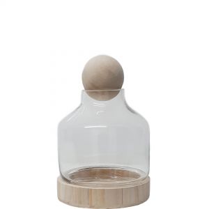 The trendy vase you simply must have if you love growing desert plants or succulents. This Terrarium vase comes with varnished wood base and stopper. The wooden ball acts as a stylish lid, allowing moisture to condense on the terrarium’s roof and wall which, in due course falls to rehydrate the soil. The perfect vessel to create a stylish home for succulents, plants and lush greenery.